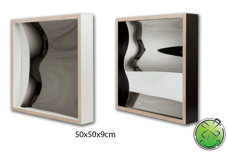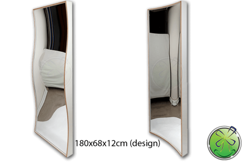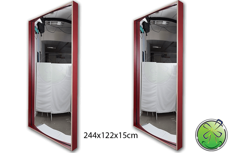 A menudo se nos pide que proporcionemos un espejo de sonrisa sin marco. Sin embargo, la placa del espejo sería plana nuevamente. Porque son precisamente las rebajas en el marco las que mantienen el espejo en la forma correcta, lo que causa las distorsiones. Sin embargo, es posible hacer una sonrisa espejo sin marco. Luego enrollamos una placa de acero inoxidable en la forma deseada. Comprenderá que esto no es barato y, además, la posibilidad de daño es alta. No nos hacemos responsables de esto, ya que la hoja que entregamos está enrollada, por lo que cualquier daño causado por granos de arena o similares tendrá que ser considerado en su análisis de riesgos.
